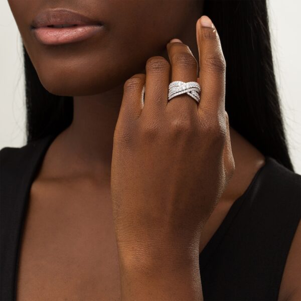 Luxe and lovely, this diamond triple-row crossover ring is an outstanding look you’ll love to wear day or night.