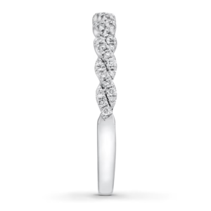 A gorgeous symbol of your love, this sparkling bridal set from features an engagement ring with a romantic heart-shaped diamond haloed by glimmering round diamonds. The band and matching wedding ring are adorned with twists of round diamonds, bringing the total weight of the set to 7/8 carat. The ring is styled in 14K white gold.