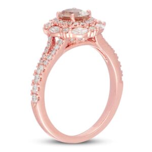 A gorgeous symbol of your love, this sparkling bridal; features an engagement ring with a romantic heart-shaped diamond haloed by glimmering round diamonds. The band and matching wedding ring are adorned with twists of round diamonds, bringing the total weight of the set to 7/8 carat. The ring is styled in 14K white gold.